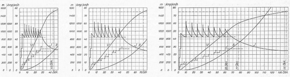 Spezielle Anfahrversuche haben gezeigt, dass bei der normalen Einstellung der Beschleunigungsrelais (d.h ohne Ueberschreitung der max. zulässigen Anfahrstromspitze) die Pflichtenheft-Bestimmungen für das Anfahren weit übertroffen wurden.